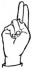 На ћирилици написано ЈЕЛИСАВ АПОСТОЛОВИЋ састоји се из 18 слова [?]. Исписано ћириличном једноручном азбуком за глувонеме: